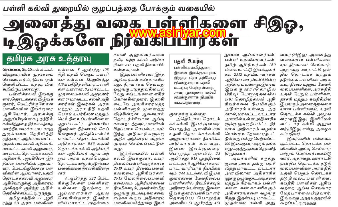 அனைத்து வகை பள்ளிகளை CEO, DEO க்களே நிர்வகிப்பார்கள், தமிழக அரசு உத்தரவு